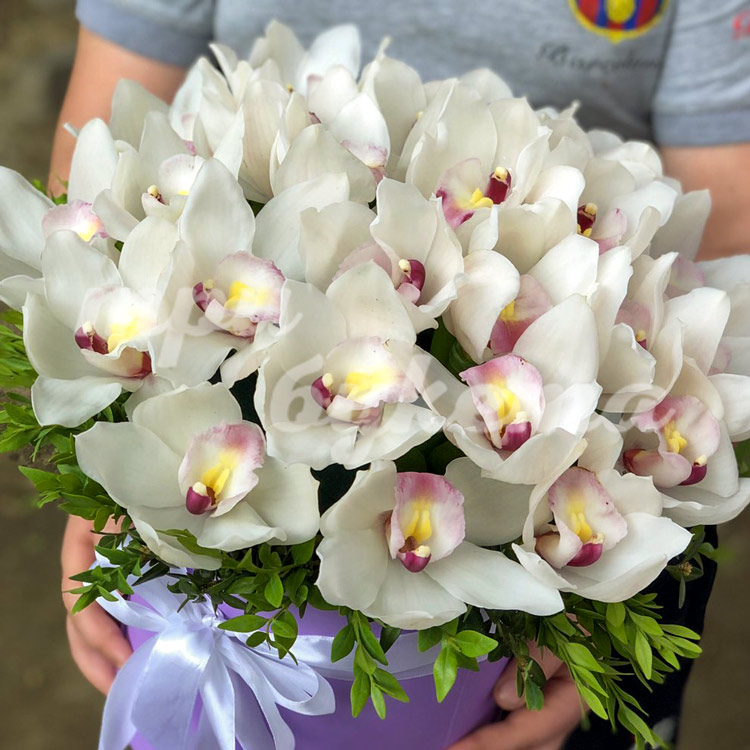 Белые орхидеи в коробке