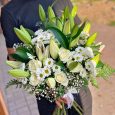 Букет белых лилий и альстромерий с зеленью