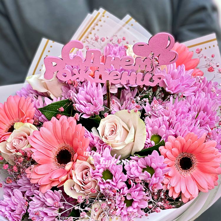 Букет хризантем и гербер на день рождения