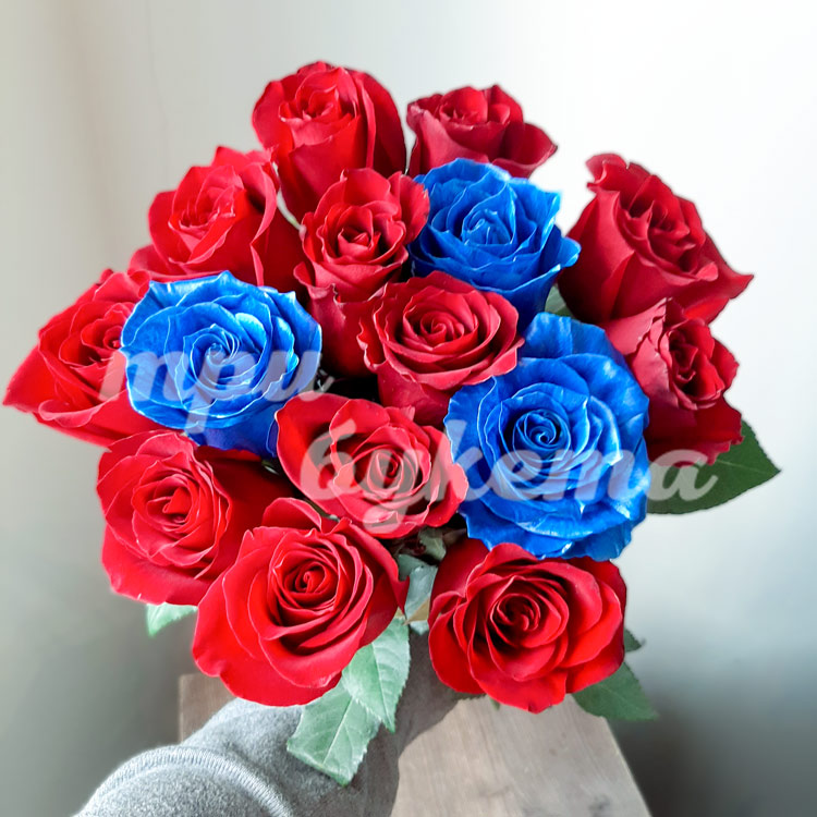Букет из 15 красных и синих роз