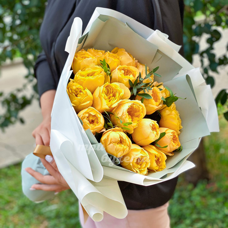 Букет из 19 желтых пионовидных роз