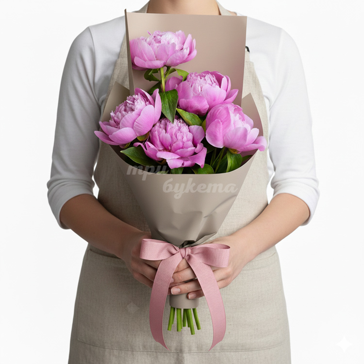 Букет из 5 розовых пионов