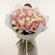 Букет из 51 белой и персиковой розы