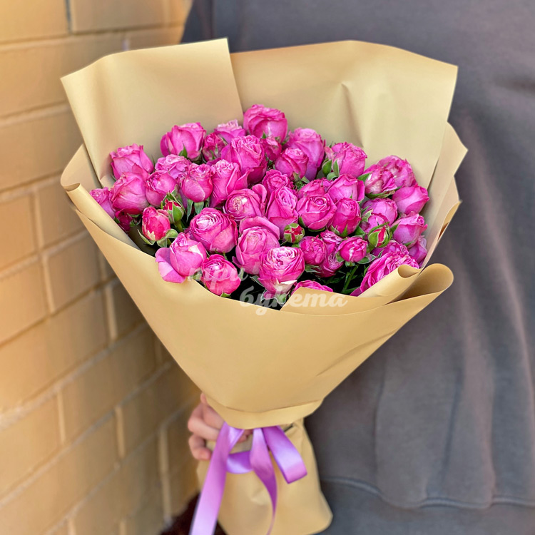 Букет из 7 розовых куст. пионовидных роз