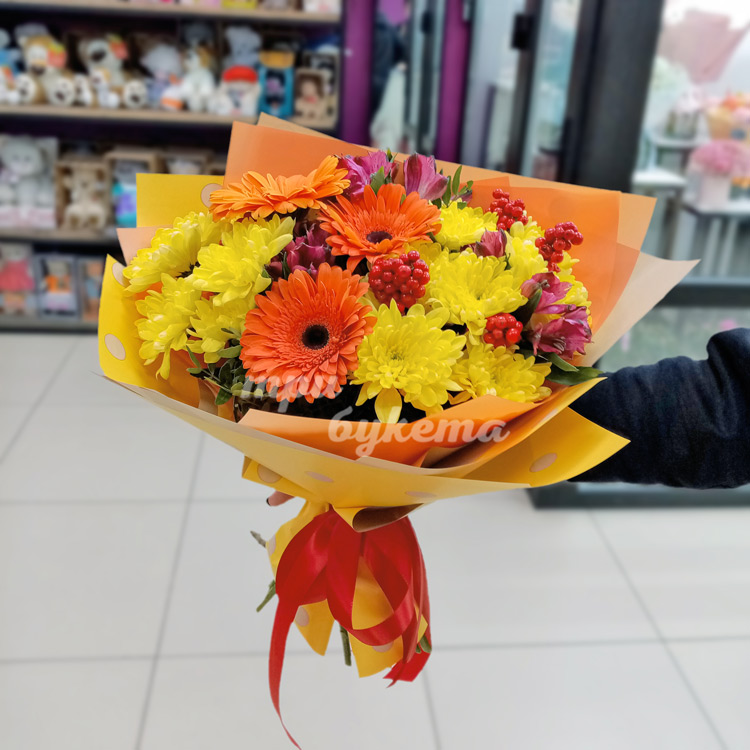 Букет из 3 гербер и хризантем