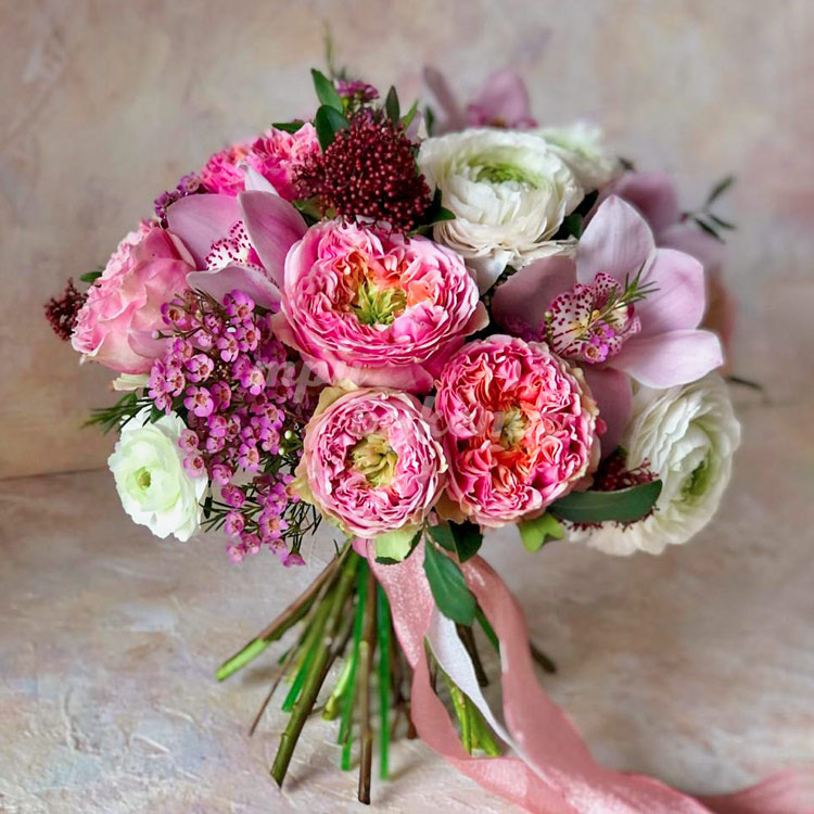 Букет из ранункулюсов и орхидей