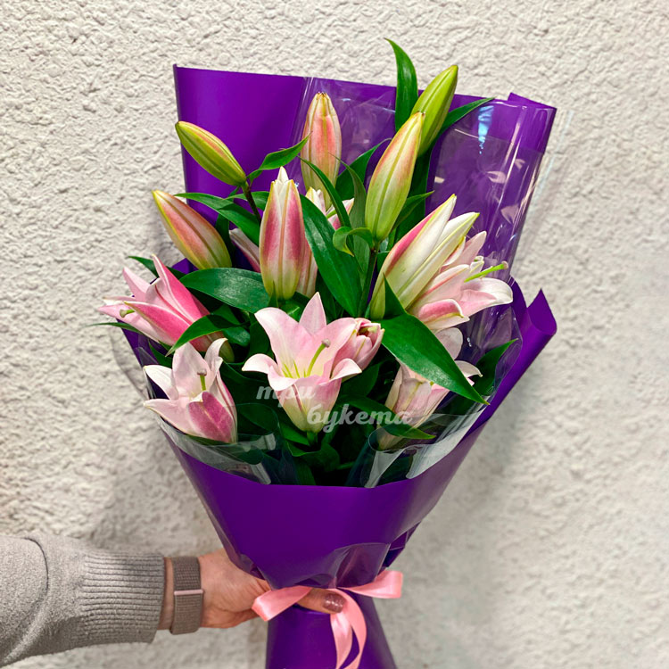 Букет из розовых лилий