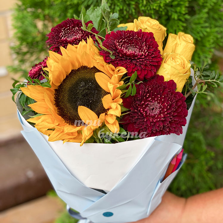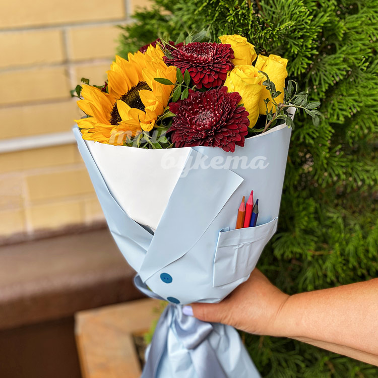 Букет на 1 сентября из подсолнухов