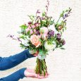 Композиция из роз, гвоздик и хлопка