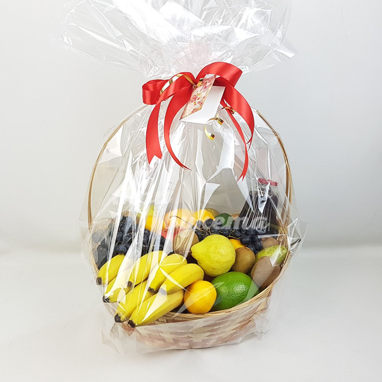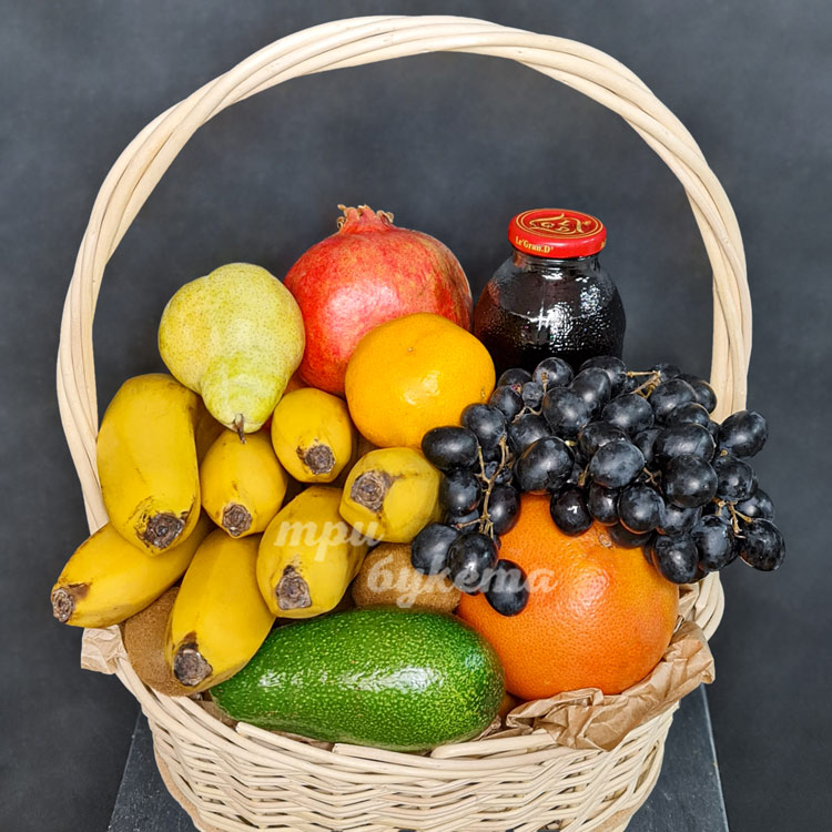 Корзина с бананами, киви и соком