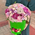 Корзина хризантем с подсолнухом