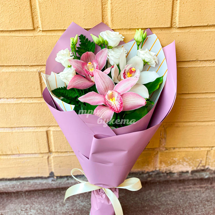 Мини-букет из орхидей и эустом