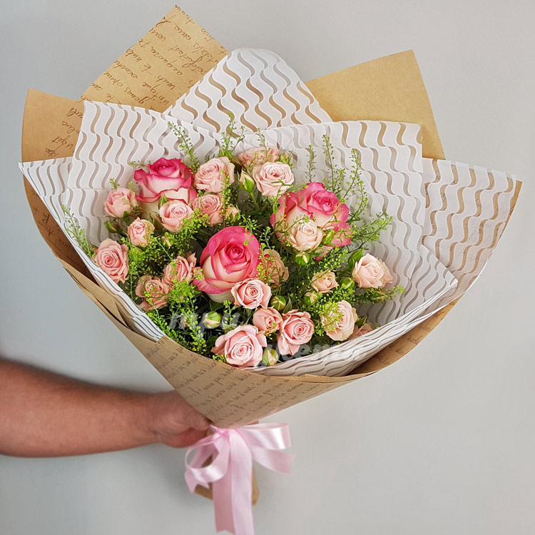 Мини-букет розовых роз с тласпи