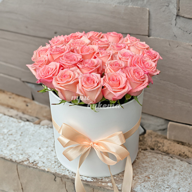 Персиковые розы в шляпной коробке