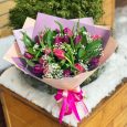 Розовый букет из гортензии, роз и эустом