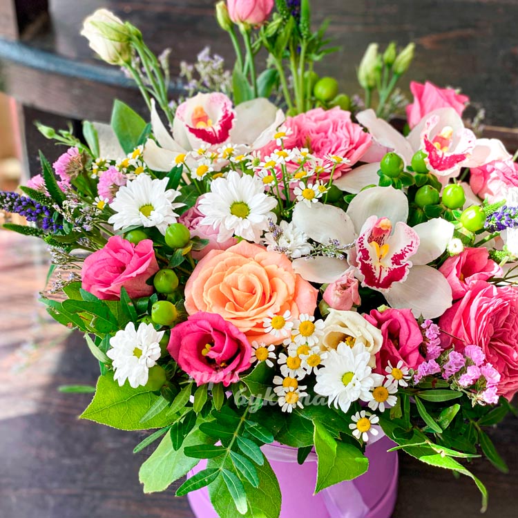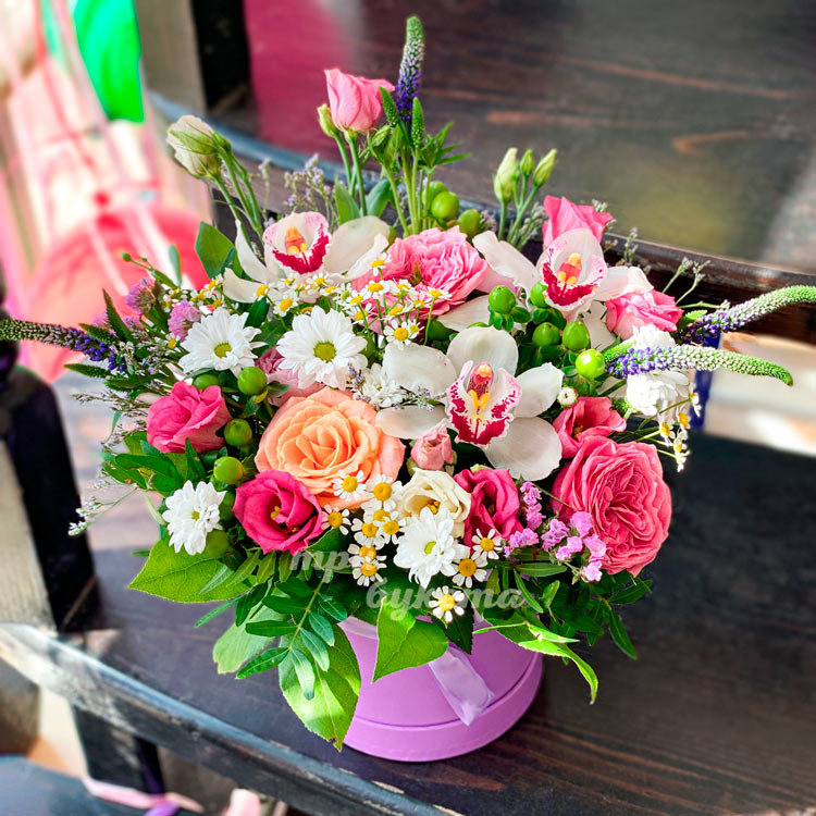 Весенняя композиция цветов в коробке