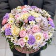 Яркая коробка с розами и статицей