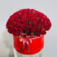 Яркие розы на 8 марта в шляпной коробке