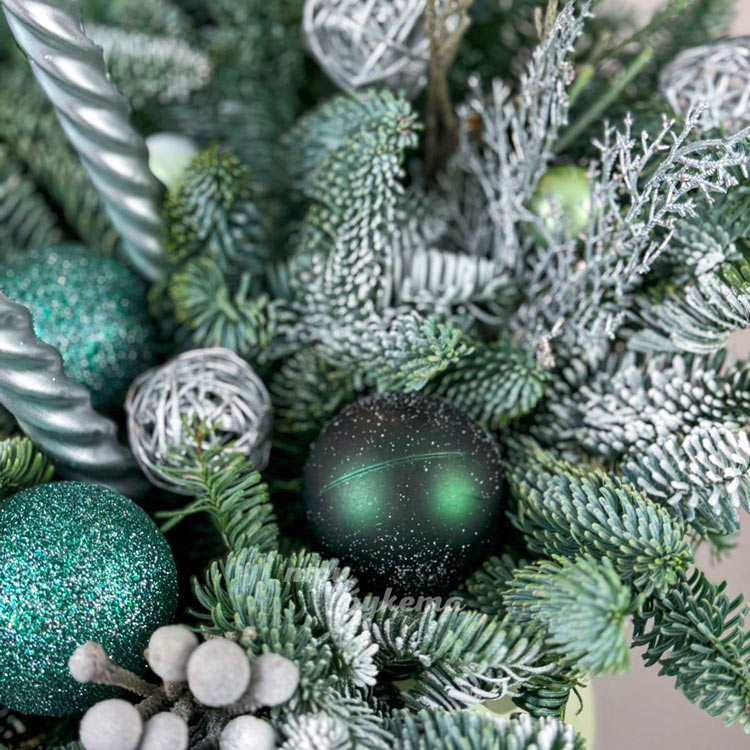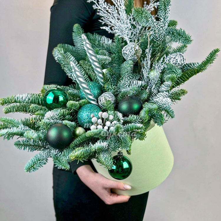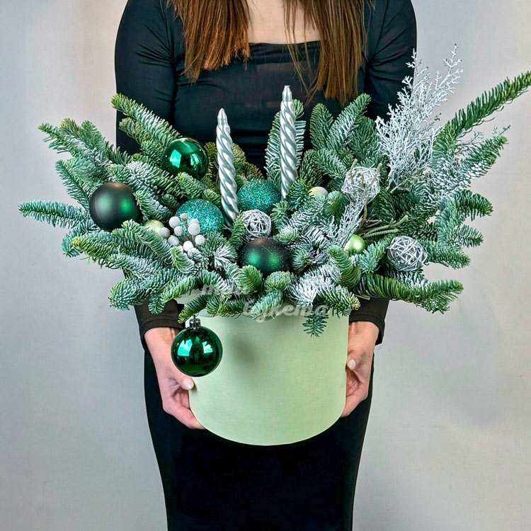 Зеленая новогодняя композиция в коробке