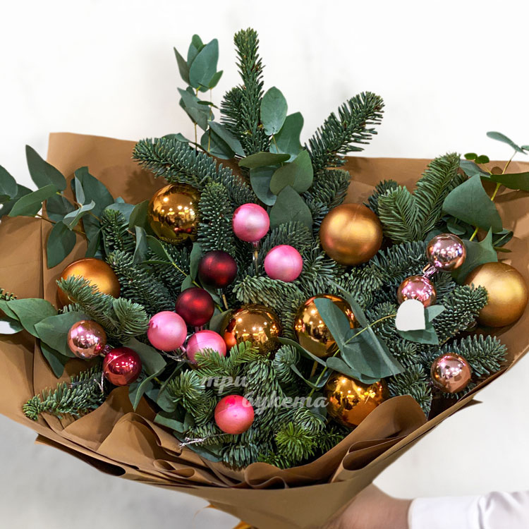 Зимний букет из шаров и веток хвои
